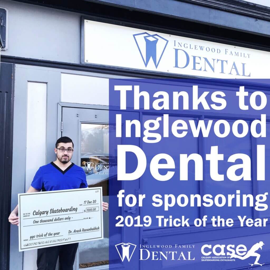 Well, Inglewood Family Dental gave $1000 to Calgary Skateboarding for the 2019 Trick of the year contest.